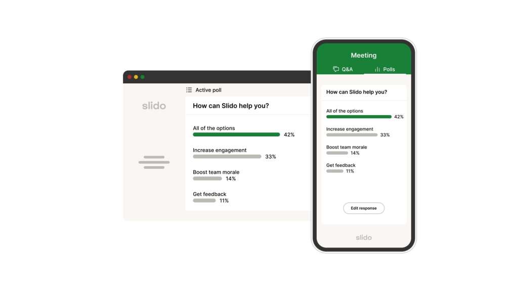 - The poll will appear as an interactive slide, and attendees can respond via a shared link or QR code.