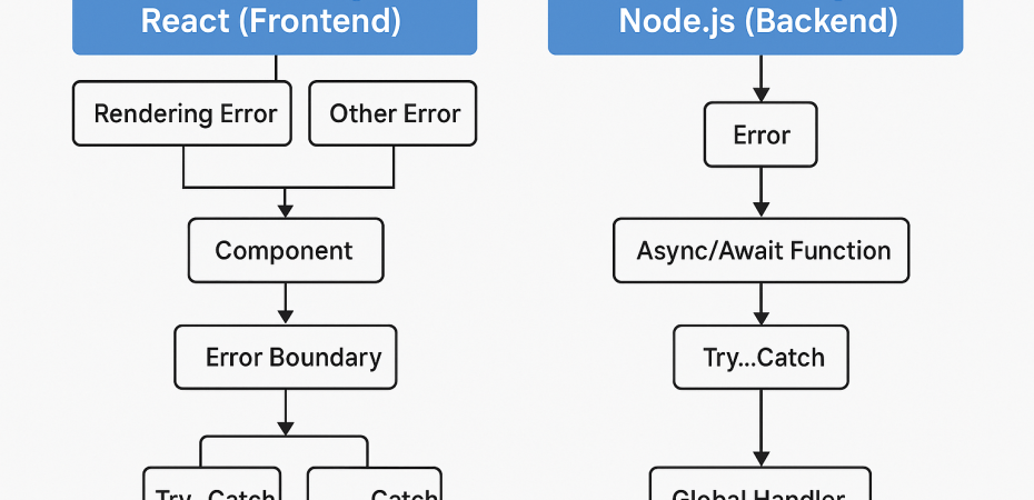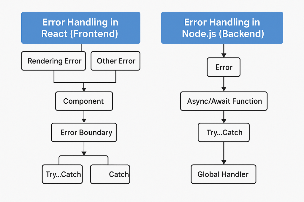 | Main Tools | Error Boundaries, try/catch | Try/catch, middleware |